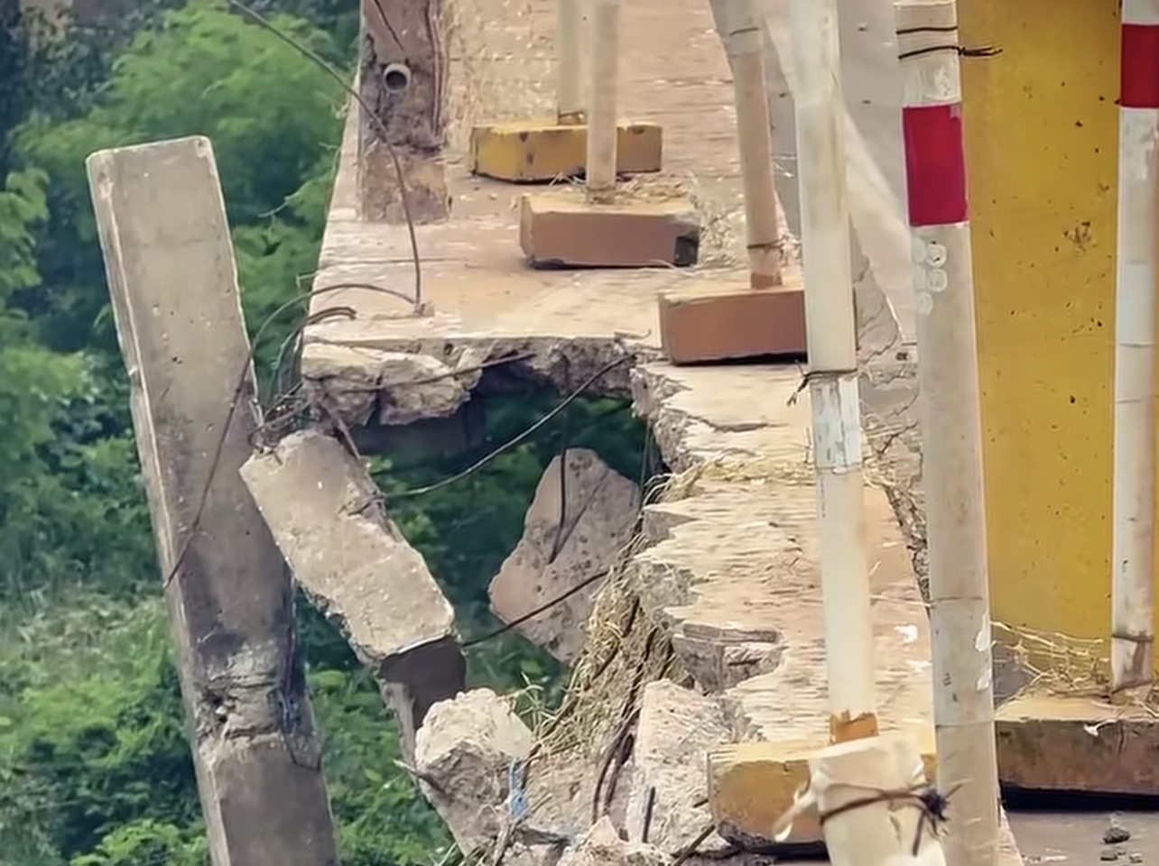 Através de um vídeo, percebe-se fissuras gigantescas nas juntas de dilatação de uma das pontes e muletas de proteção quebradas, situação que oferece iminente risco para transeuntes.