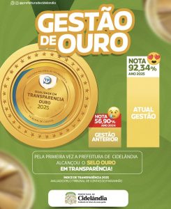 O Prefeito Eustáquio Sampaio expressou seu entusiasmo com a notícia: “Este Selo Ouro não é apenas um reconhecimento para a prefeitura; é uma vitória do povo de Cidelândia. Transparência é a base de uma gestão justa e eficiente. Ao abrir as contas e mostrar onde cada centavo é investido, estamos fortalecendo a confiança do cidadão e garantindo que os recursos sejam aplicados onde realmente são necessários,” declarou o gestor.